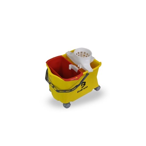 O Balde poder ser utilizado sem a divisória, sendo de fácil deslocamento pois conta com alças resistentes e rodízios de 50 mm, que permitem deslocamentos sem derrame dos líquidos internos.