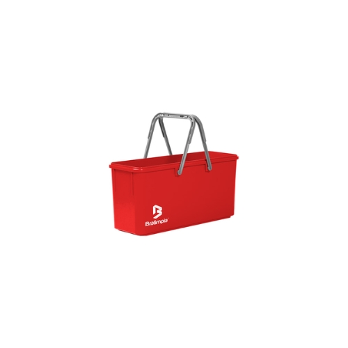 Baldes retangulares com capacidade para 25 litros.
