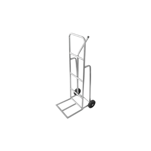 Carrinho para transporte de cargas. Confeccionado em aço carbono SAE 1020 galvanizado, possui duas rodas de 6” em polipropileno (PP) com PVC. Não recomendamos o uso dos carrinhos em aço carbono galvanizado em áreas litorâneas.