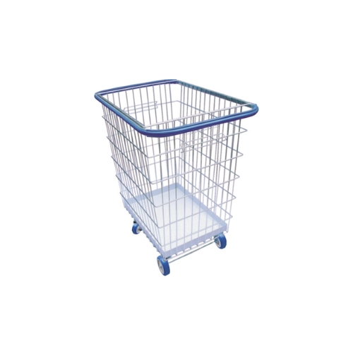 Confeccionado em aço carbono SAE 1020 galvanizado, com borracha de proteção na borda superior, cantos arredondados para melhor manipulação do carrinho. Possui bandeja em aço carbono SAE 1020 com pintura epóxi. Acompanha 2 rodas giratórias 4”, 2 rodas 5” de pvc e kit de parafusos e porcas para a fixação do cesto na base. Não recomendamos o uso dos carrinhos em aço carbono galvanizado em áreas litorâneas.