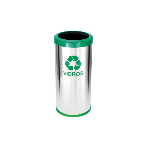 Lixeira confeccionada em aço inoxidável AISI 430, fundo em plástico ABS de alta resistência e aro plástico injetado em polipropileno (PP). Possui a borda superior e inferior enrolada para melhor manipulação. Acompanha bandeja interna em plástico polipropileno para evitar o vazamento de eventuais líquidos provenientes dos resíduos acumulados Adesivo conforme a cor e o resíduo a ser coletado, segundo estabelecimento pelo CONAMA em sua resolução n° 275. A identificação adotada pela nossa empresa é: AZUL: papel; VERMELHO: plástico; VERDE: vidro; AMARELO: metal; PRETO: madeira; LARANJA: pilha e bateria; BRANCO: infectante; MARROM: orgânico; CINZA: não reciclável.