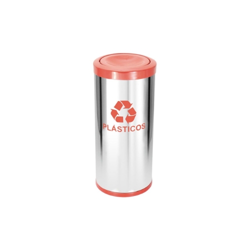 Lixeira confeccionada em aço inoxidável AISI 430, fundo em plástico ABS de alta resistência e tampa meia esfera plástica injetada em polipropileno (PP). Possui a borda superior e inferior enrolada para melhor manipulação. Acompanha bandeja interna em plástico polipropileno para evitar o vazamento de eventuais líquidos provenientes dos resíduos acumulados. Adesivo conforme a cor e o resíduo a ser coletado, segundo estabelecimento pelo CONAMA em sua resolução n° 275. A identificação adotada pela nossa empresa é: AZUL: papel; VERMELHO: plástico; VERDE: vidro; AMARELO: metal; PRETO: madeira; LARANJA: pilha e bateria; BRANCO: infectante; MARROM: orgânico; CINZA: não reciclável.