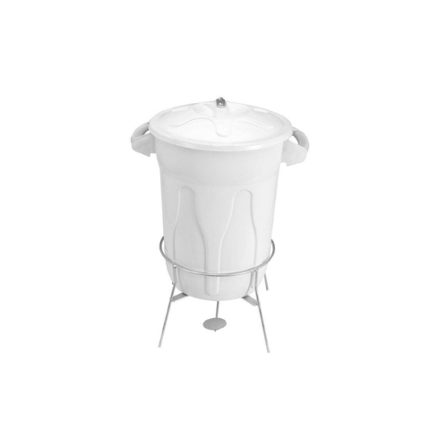 Injetados em plástico polipropileno (PP), o acionamento da tampa é feito através de pedal o que evita eventual risco de contaminação. A armação é confeccionada em aço carbono SAE 1020 galvanizado. Acompanha parafusos de fixação da tampa no suporte e quatro ponteiras para proteger o piso.